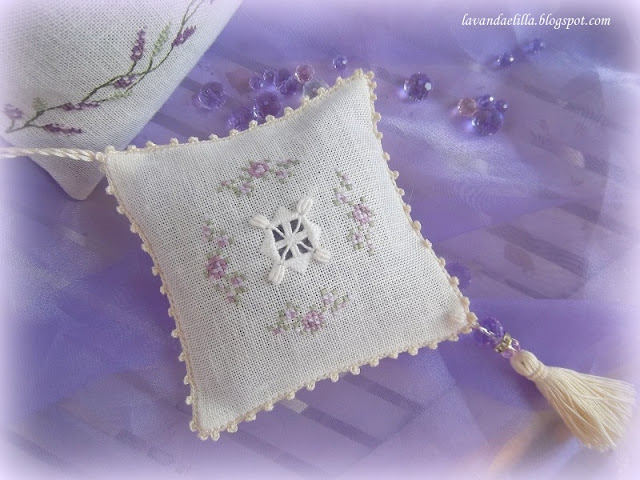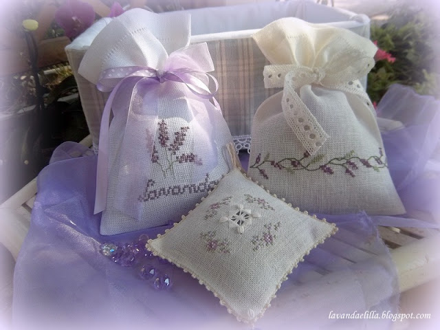 Claudia cara, non so come ti riesce ricamare con questo caldo! Io solo a sistemare qualcosa di cucito, devo mettermi il borotalco sulle mani. Questi sacchetti sono una meraviglia, io poi che adoro la lavanda......sto andando a caccia per vedere se ne trovo un pò in giro. Qualcosa ho trovato, ma poca roba. Furbo il tuo canino eh, al fresco e pure profumato. E' un dritto da niente!!! Un abbraccio Paola