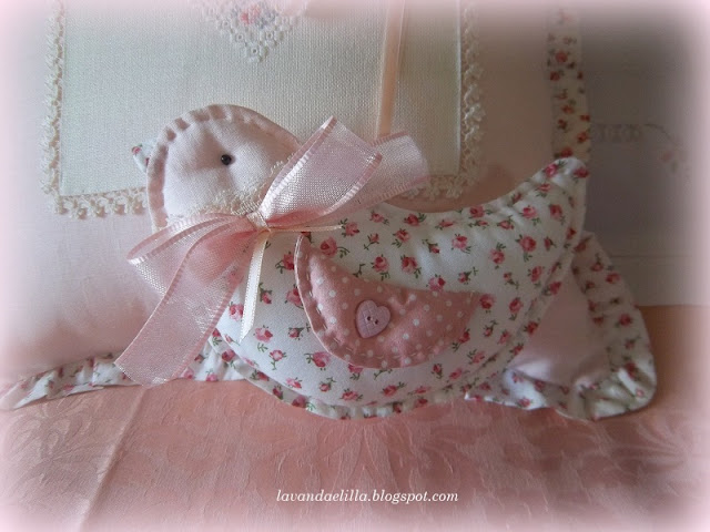 AUGURI !!!!!!!!!!! il tuo cuscino è bellissimo la tua nipotina ne sarà fiera !!!!!!! l'uccellino è tenerissimo...